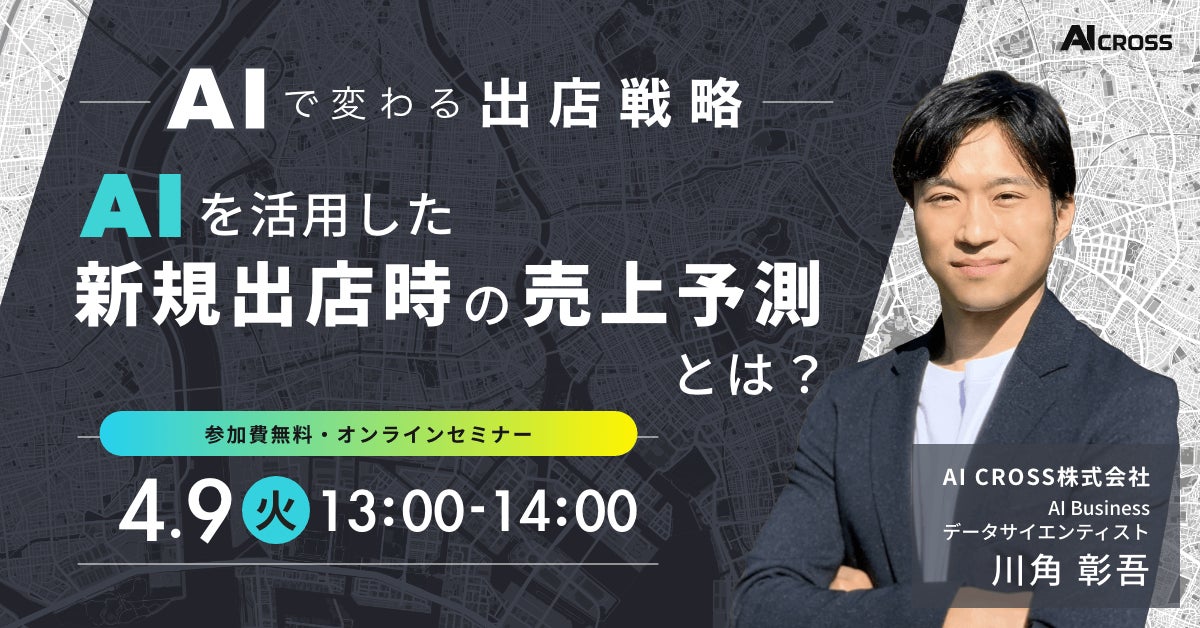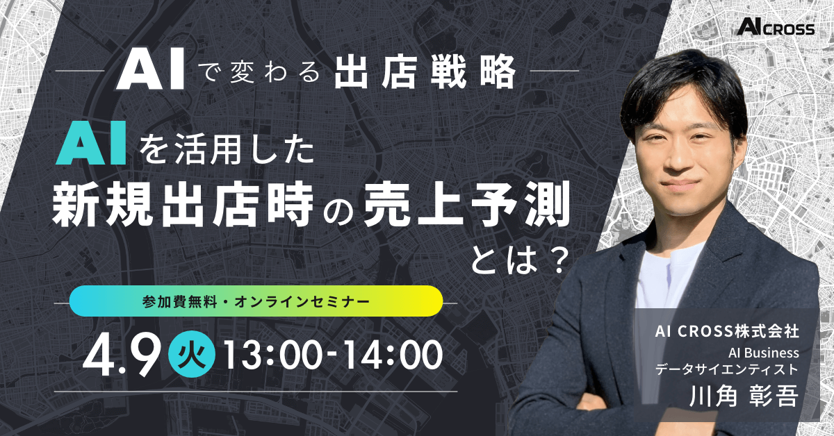 データサイエンティストによる無料オンラインセミナー「AIで変わる出店戦略 AIを活用した新規出店時の売上予測とは?」を2024年4月9日(火)13時より開催