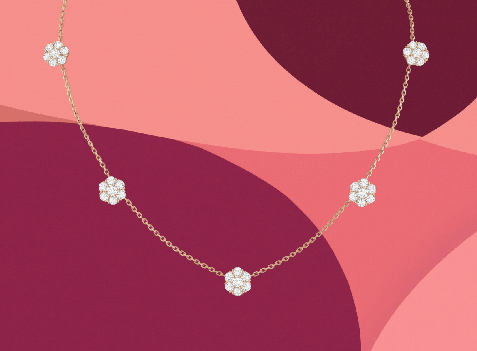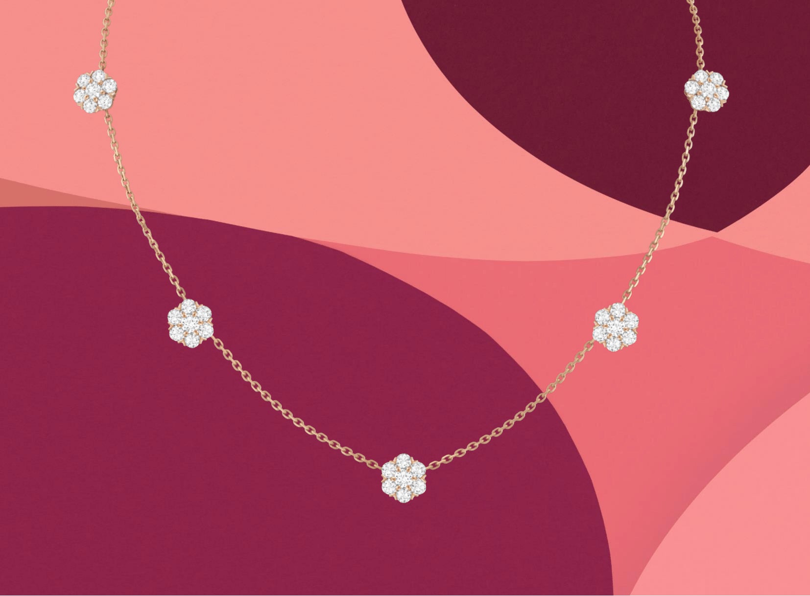 フルーレット ネックレス、5フラワー(ローズゴールド、ダイヤモンド)