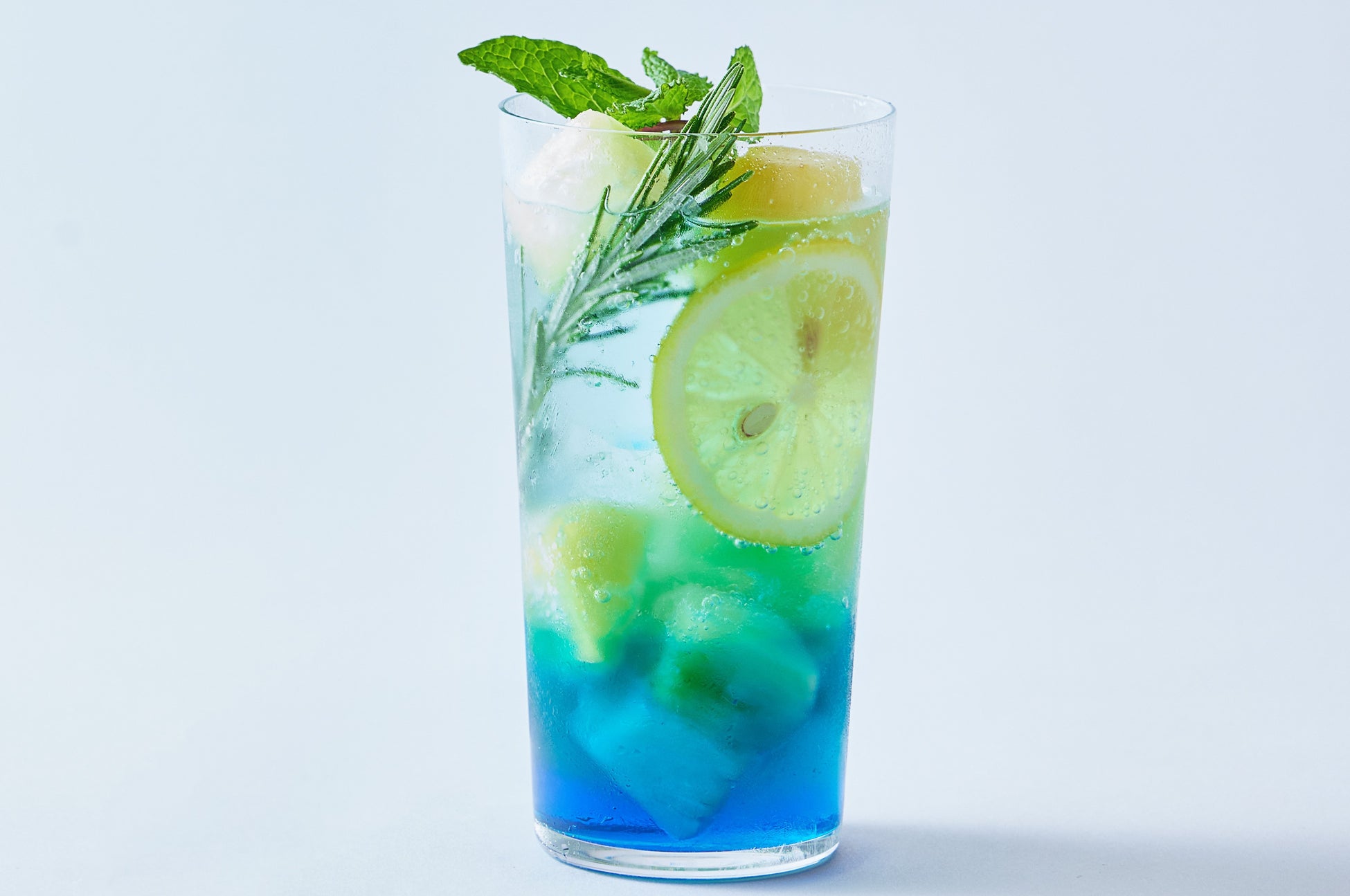 凍らせたパイン、ミントとハーブを海に見立てたソーダに詰め込みました。フレッシュなレモンも加えて、夏らしい爽やかな味わいです。