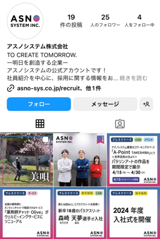 これからも、Instagram公式アカウントをはじめ、各種webメディアを通じ、アスノシステムの情報をお届けいたしますので、ぜひご覧ください。