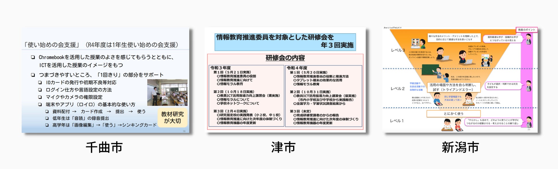 各市の取り組み内容、成功の秘訣、研修計画のポイントについて掲載しています。