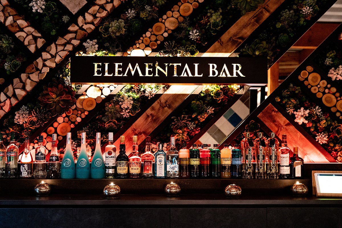 お洒落な大人空間のエレメンタルBARではお客様のイメージや気分に合わせて、気分を盛り上げる、オリジナルカクテルをご用意。約120種類の中からお客様のお好きなアルコールメニューをお選びいただけます。