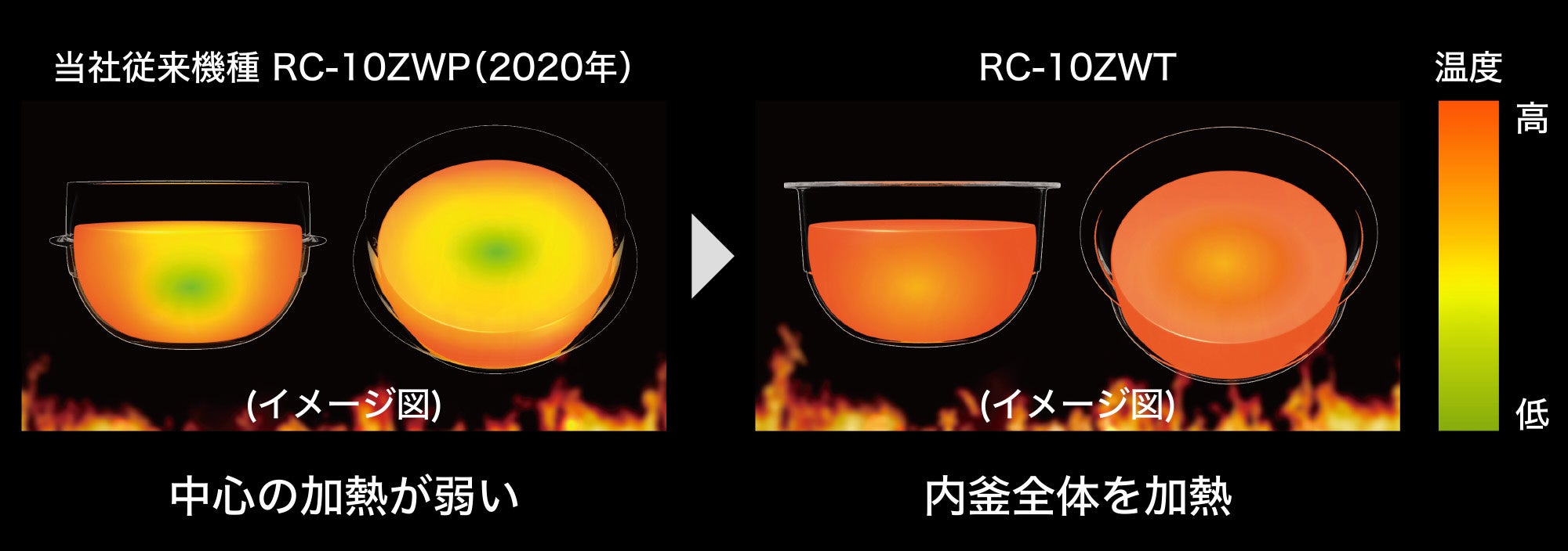 熱対流の回転方向を切り替える独自[※2]の加熱方式、業界初[※3]カラータッチ液晶も新搭載