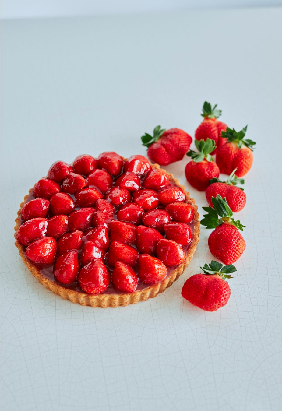 見た目以上の、美味しさの価値と向き合い探求したいと、不揃いの1番摘みあまおうを使用したタルトを作りました。美味しさだけにこだわり、1つ1つ選び抜いた友納農園のあまおうを使用しています。