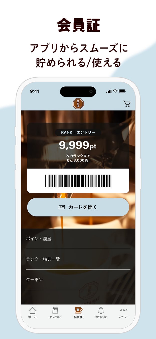猿田彦珈琲の直営店・公式オンラインショップのお買い物で獲得したポイントがお会計時にご利用可能に。また、貯めてお得なスタンプカード、公式オンラインショップへアクセスしやすいデザインの一新など、お客様により満足いただける新機能を多数ご用意しました。