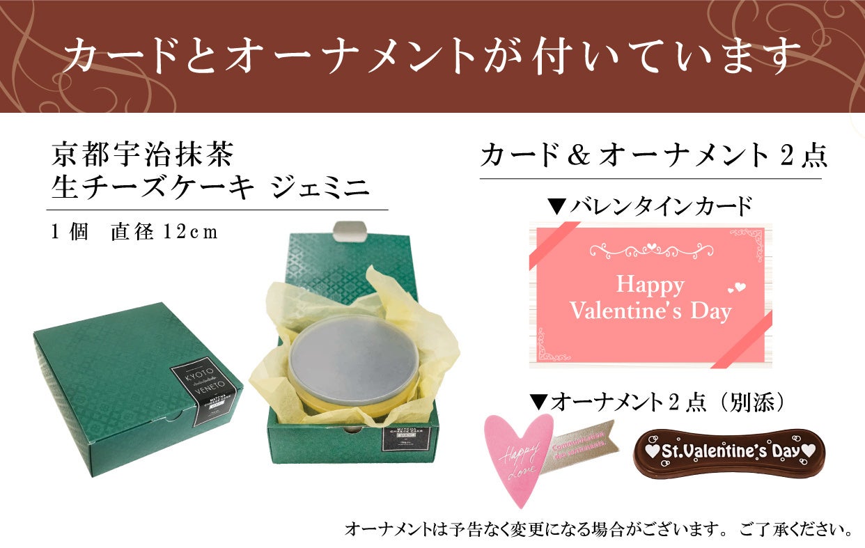 ■お届け内容:京都宇治抹茶生チーズケーキ ジェミニ(1個 )※Valentineオーナメント2点&カード付き
