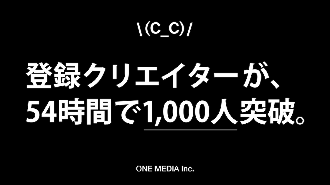 ワンメディアの新事業 クリエイターレーベル「(C_C)」(シーシー)、当初の登録者数目標1,000人を54時間で突破!