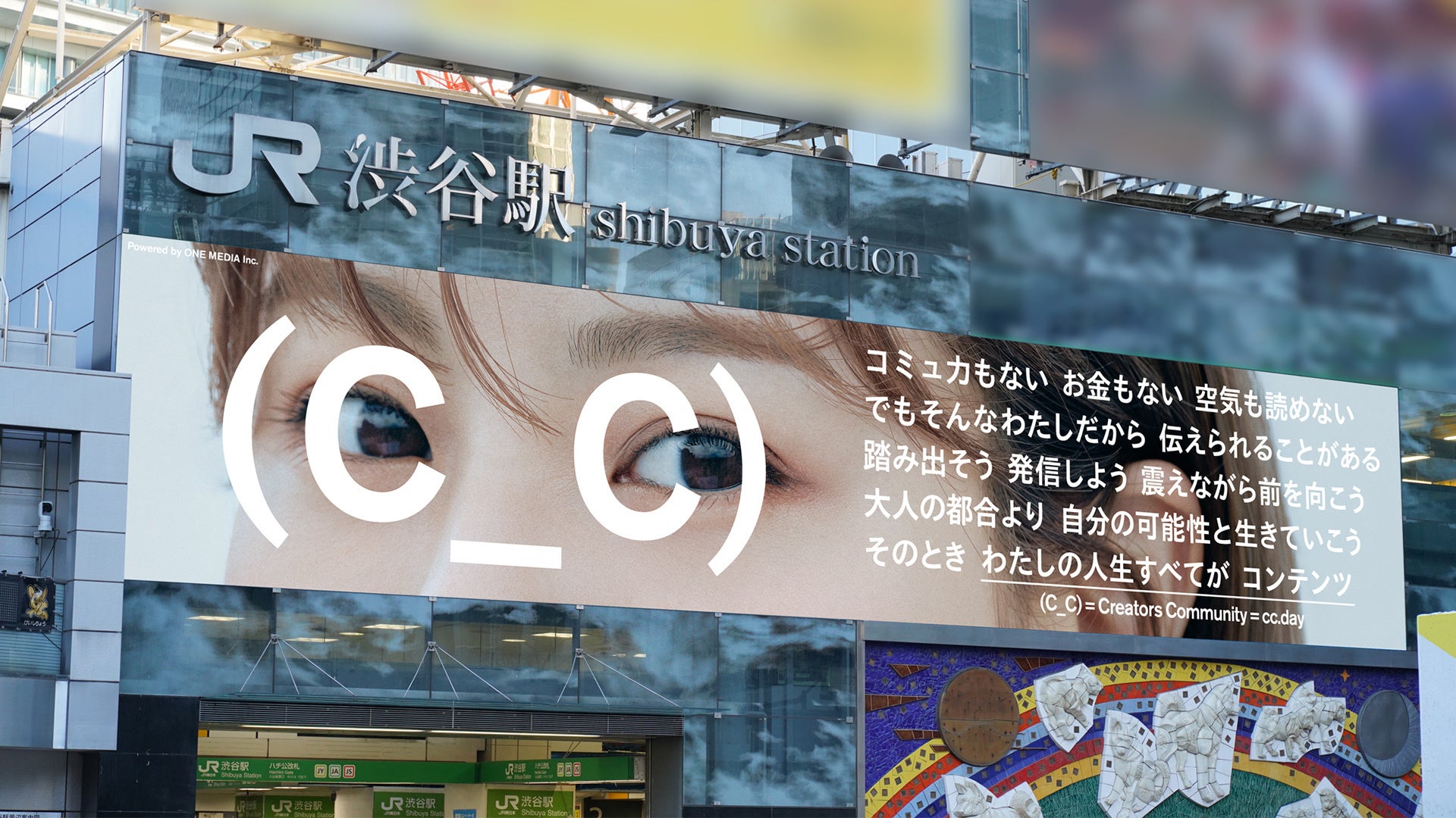 さらに、5月30日(月)よりJR渋谷駅のハチコーボードにて展開している「CC」の大型広告は、SNSを中心に話題に。「いつか何者かになるために、小さな一歩を踏み出し続けたい。」「めっちゃ響きます! LINE友だち登録しました!」といった内容の投稿が多く見られ、ワンメディアとしてクリエイティブを作る会社から、クリエイターを増やす会社に変わるという決意表明だけでなく、見た人々の背中を押すような広告に好意的なコメントが多く寄せられています。