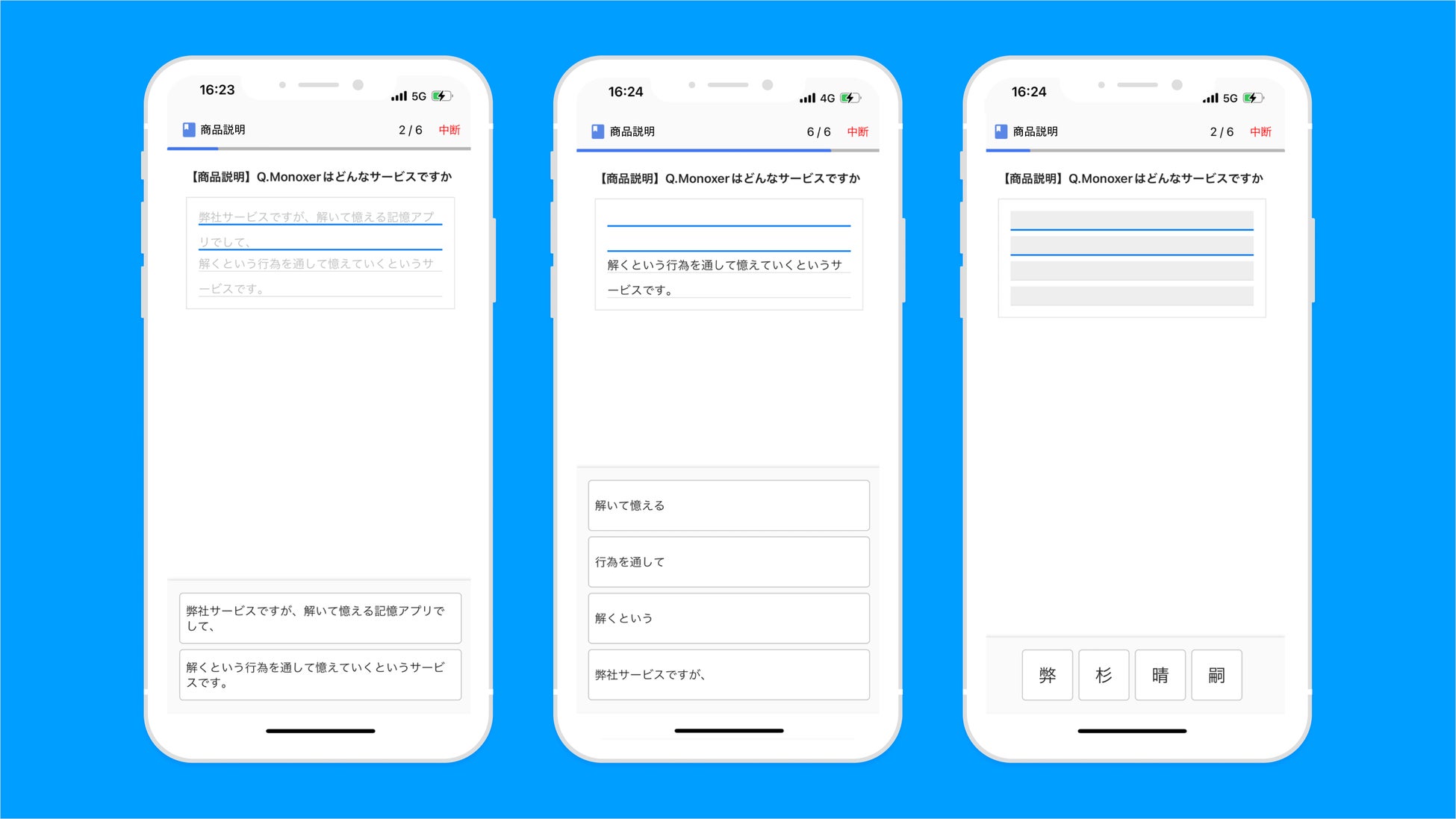 試験勉強に必要な文章や歴史的に有名な詩、業務に必要なマニュアルやトークスクリプトなど、様々なシーンで記憶が必要な文章が存在しています。文章を記憶することは一定の負荷がかかる一方で、これまで効率的に記憶する方法が存在していなかったため、2023年10月にMonoxerでは「文章記憶機能」をリリースしました。