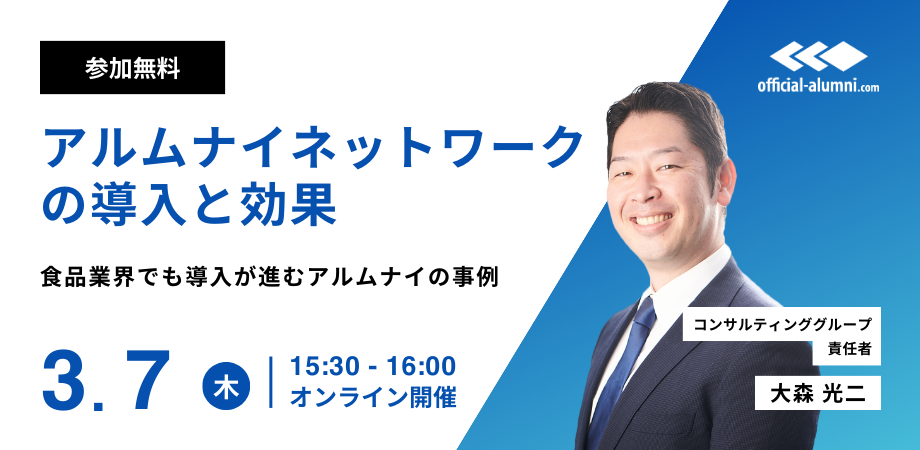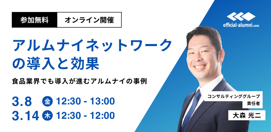 【3/8(金)・3/14(木) 12:30〜 無料オンラインセミナー開催! 食品業界でも導入が加速】『アルムナイネットワークの導入と効果』