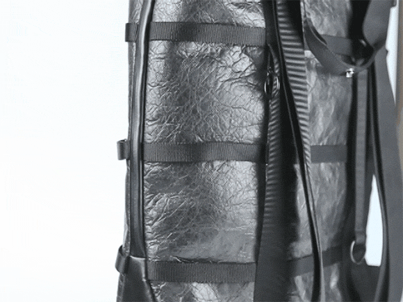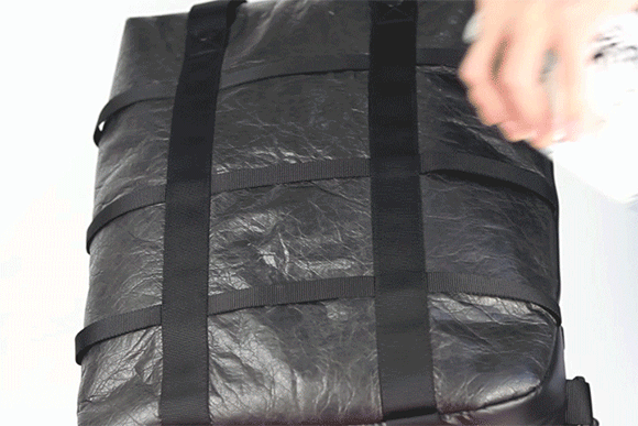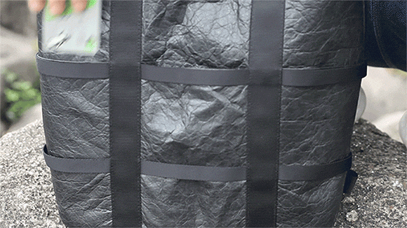 突然の通り雨などから荷物をまもってくれる防水素材。