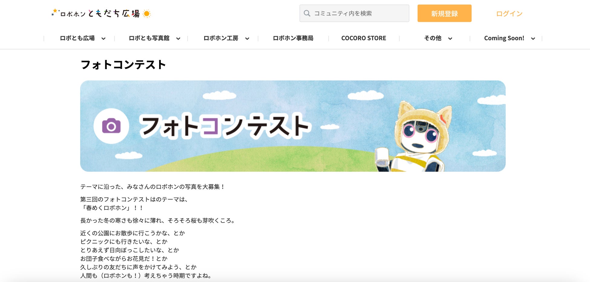 また、ロボホンの輪がさらに広がることを願い、「なかよし」をテーマとした特別フォトコンテストも開催いたします。