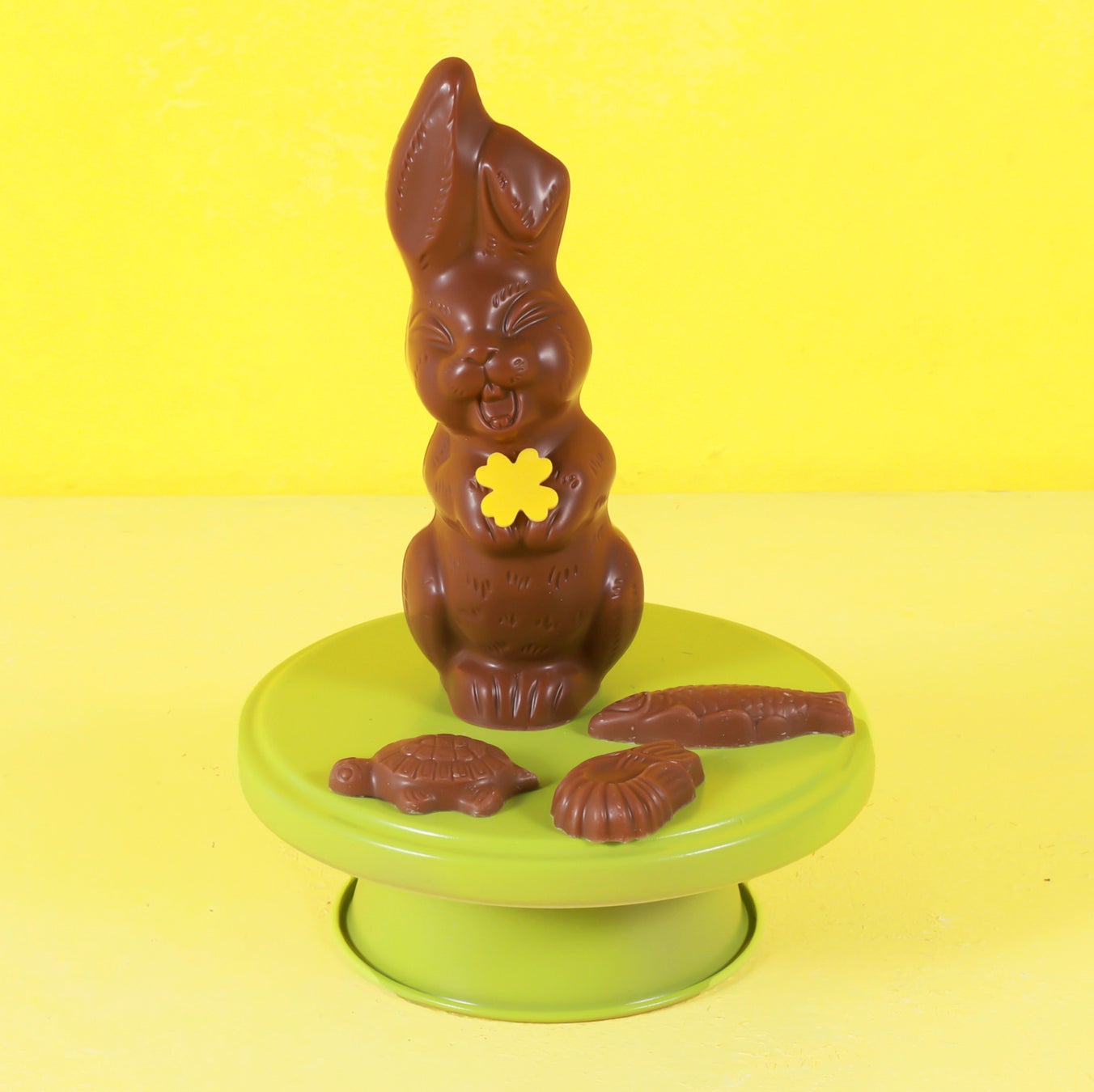 チョコレートでつくられたウサギ。中には、イースターのモチーフである魚や海の生き物をかたどった「フリチュール」が3個入っています。