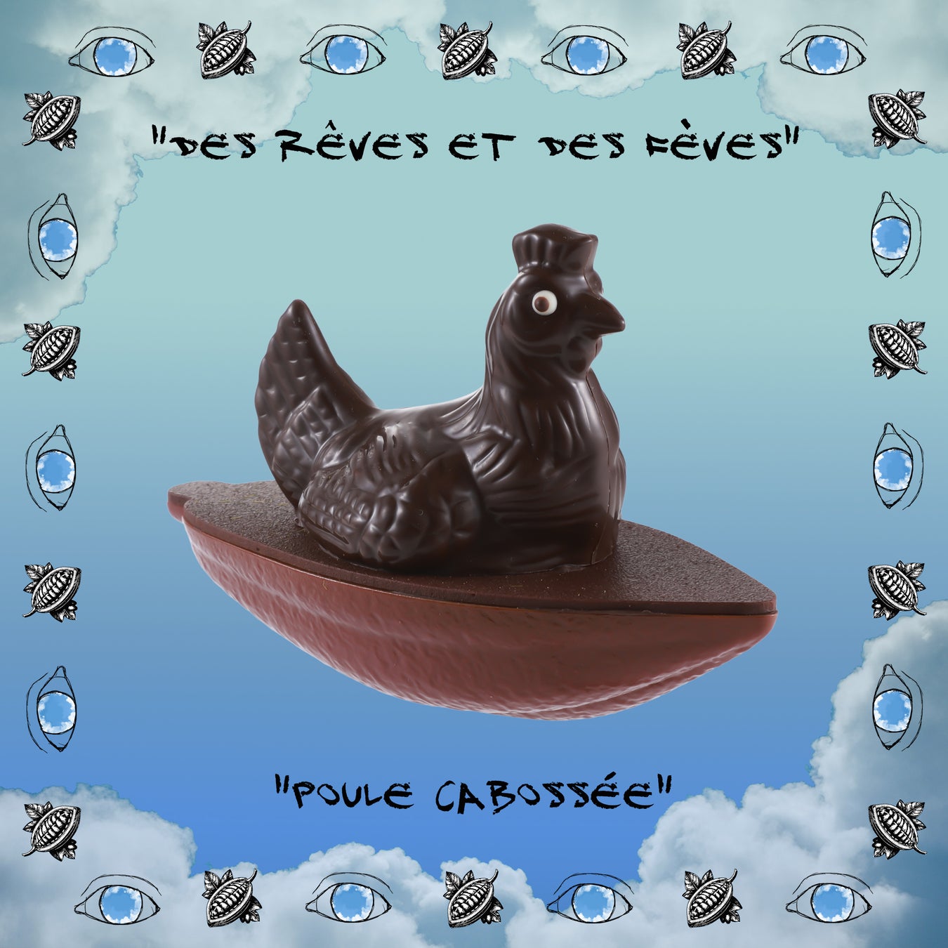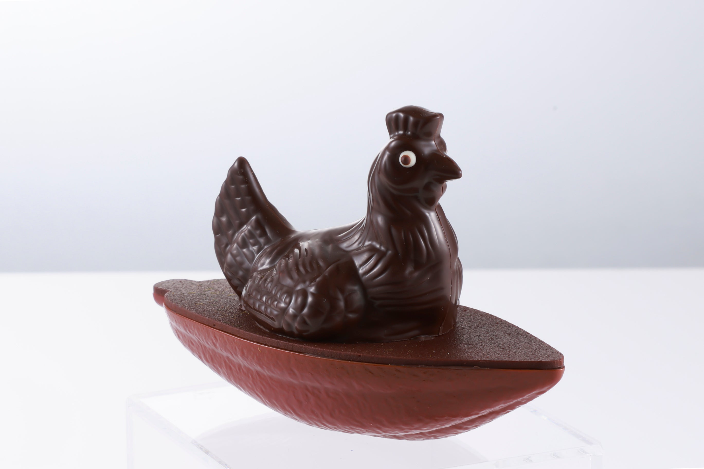 カボス(カカオの実)から現れためんどりは、自らの起源を誇らしげに宣言しています。最高のカカオの源泉からインスピレーションを得た、ジャン=ポール・エヴァンの芸術そのものをイメージしています。