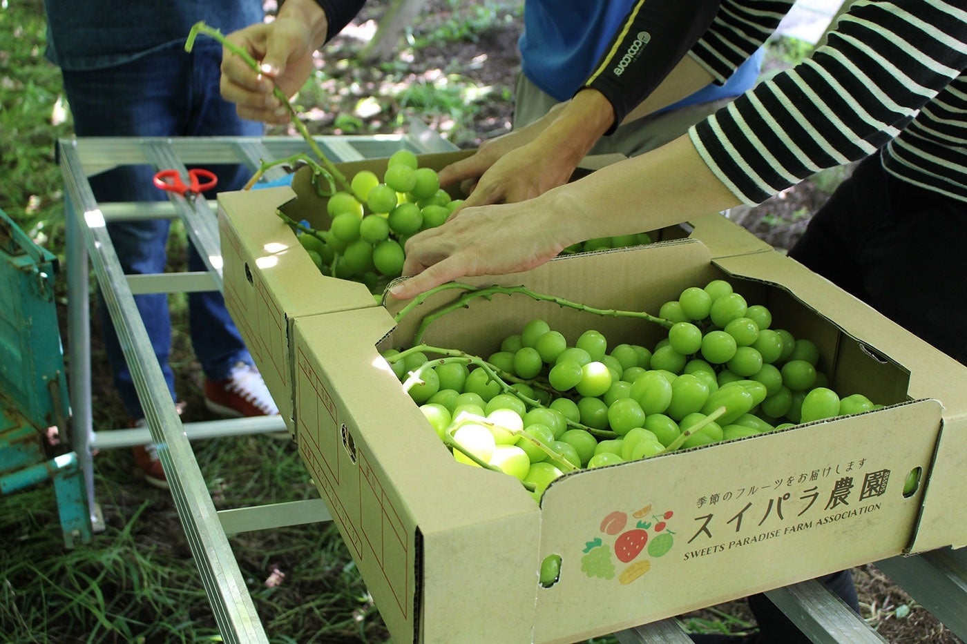 契約農家から仕入れた山梨県・長野県産を中心に、スイパラが自信を持ってお届け出来る美味しいシャインマスカットをたくさんご用意いたしました。