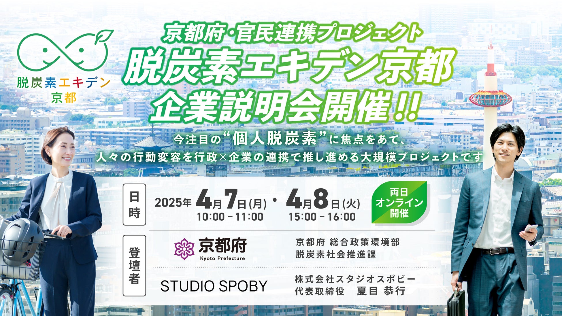 京都府とスタジオスポビー 脱炭素社会に向けた事業連携協定を締結 / プロジェクト企業説明会を4/7(月)、8(火)開催