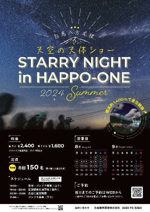 ナイトゴンドラに乗車して行く、うさぎ平のナイトイベント「天空の天体ショー」は、星空観察を体験できる特別なイベントです。標高1,400mの八方尾根うさぎ平から眺める満天の星空はまさに圧巻。専門の講師による解説や、KENKO社製の天体望遠鏡を使った観察会が行われ、どんなお客様でも楽しんでいただけます。幻想的な夜景と共に、思い出に残るひとときを過ごしましょう。この夏、白馬八方尾根で星空の魔法に包まれる特別な体験をお見逃しなく!