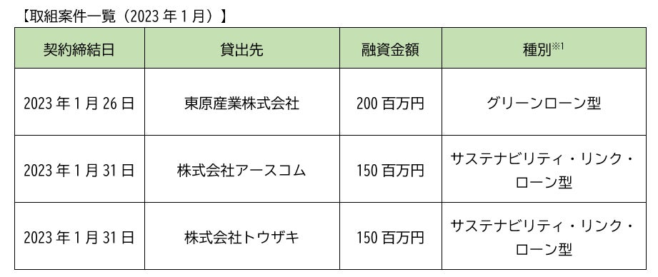 「ちばぎんSDGsリーダーズローン」2023年1月の取組案件について