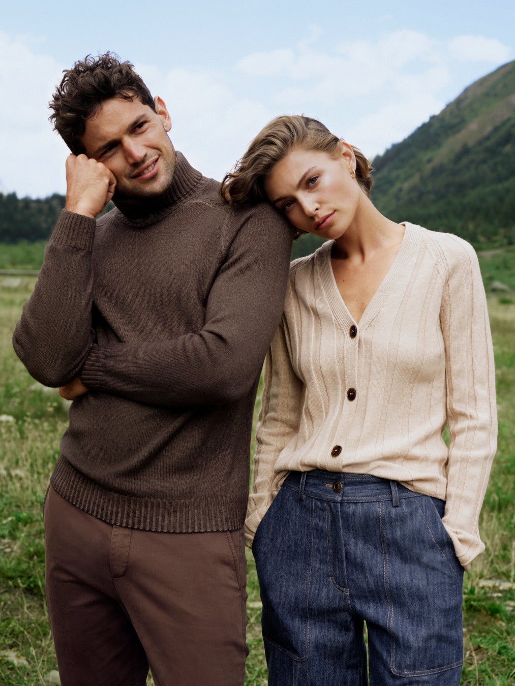 新作コレクションでは、4本糸を用いた「Ultra Soft Cashmere/ウルトラソフトカシミヤ」は温かみのあるボリューム感で、カーディガン、Vネックセーターをはじめ、タートルやラウンドネックなどベーシックなデザインに、秋色のベージュやブラウン系をはじめスモーキーなピンクやグリーン、ブルーなど落ち着いた色合いで登場します。