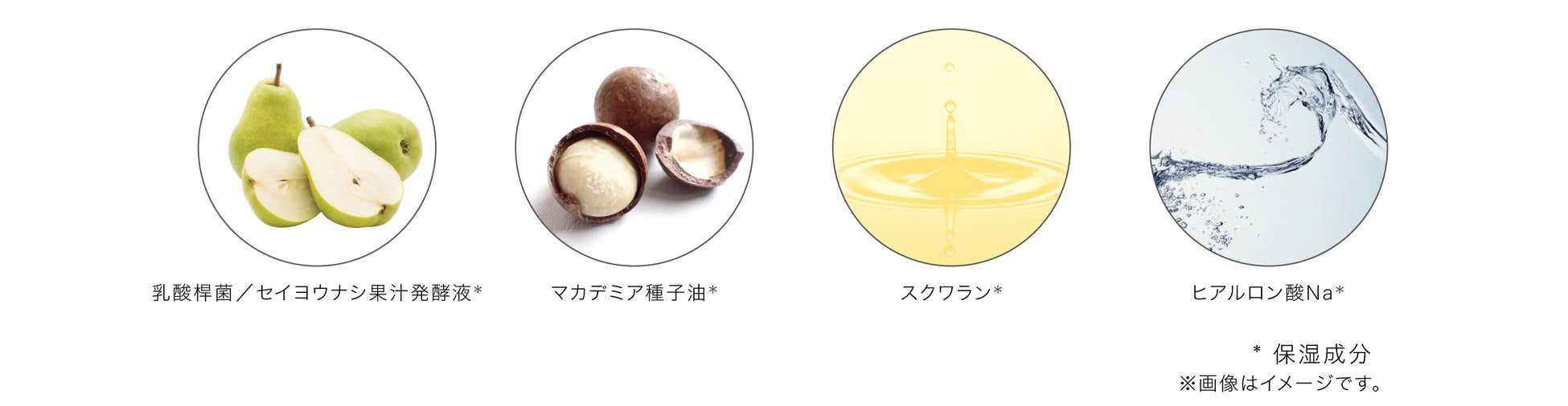 *3 マカデミア種子油、スクワラン、ヒアルロン酸Na、乳酸桿菌/セイヨウナシ果汁発酵液[保湿成分]