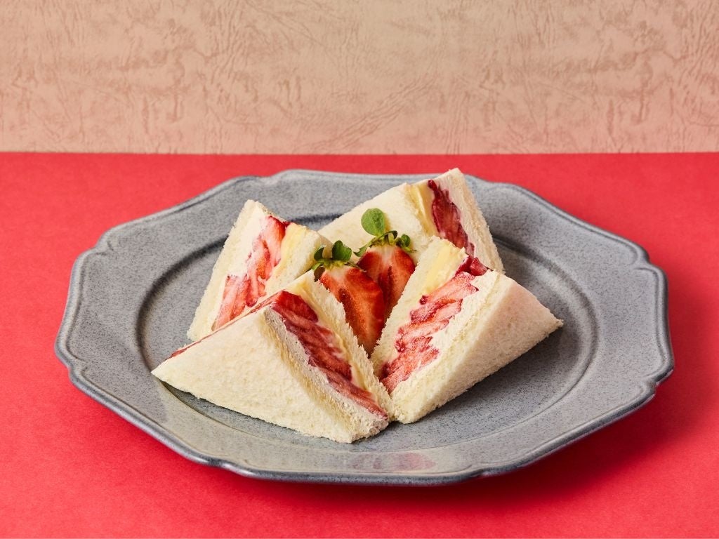 国産いちごを豆乳ホイップとカスタードでサンドした、口当たりの軽い旬のフルーツサンドです。