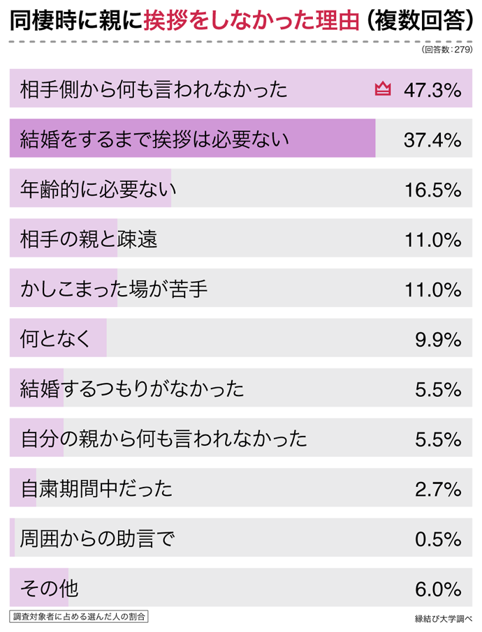 - 同棲前に挨拶をしているカップルは半数未満