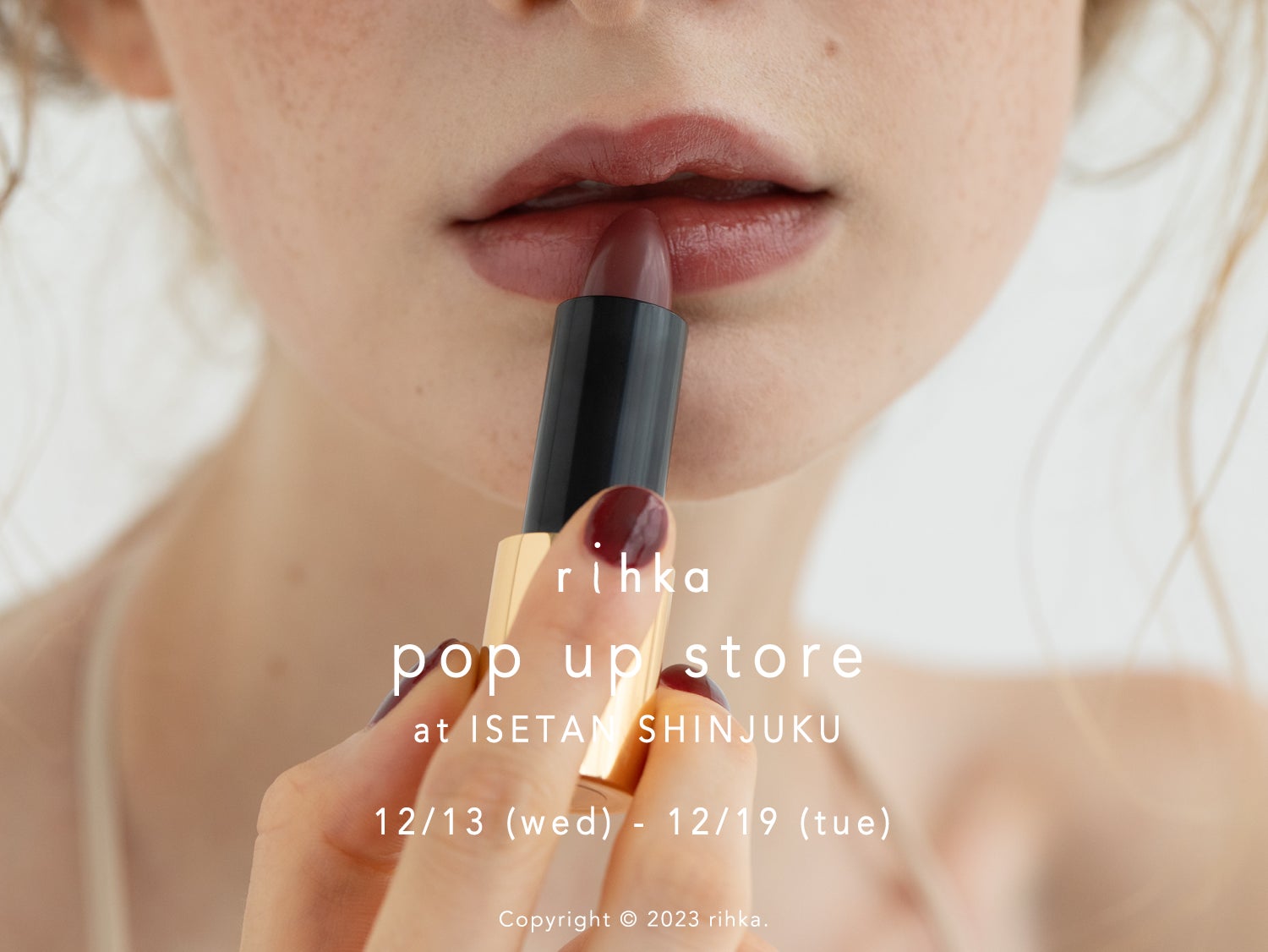 rihkaは、オンラインストアを中心に展開するコスメティックブランドです。この度開催するポップアップでは、ネイルポリッシュやリップスティックなどの定番ラインナップに加え、オンラインストアで好評だったrihka初のホリデーコフレ「rihka holiday apple cider coffret(リーカ ホリデー アップルサイダー コフレ)」や、伊勢丹新宿店限定のホリデーネイルセットもご用意しています。(*1)