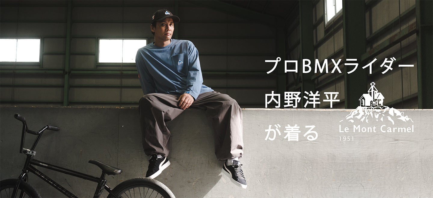 この度公開する特集記事では、『SHARE PARK』で展開するフランス発祥のアウトドアブランド『Le Mont Carmel(ル・モン・カーメル)』の新作を、Ucchie(ウッチー)の愛称で世界中のBMXライダーから親しまれている、日本のトップライダー・内野洋平選手をモデルに起用し紹介します。