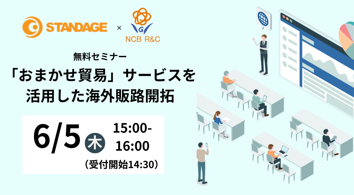 企業の海外進出を一気通貫でサポートする株式会社STANDAGE(東京都港区、代表取締役社長:足立彰紀、以下スタンデージ)と、西日本フィナンシャルホールディングス(社長 村上 英之)の子会社であるNCBリサーチ&コンサルティング(社長 井野 誠司)は、スタンデージが提供する「おまかせ貿易」サービスを活用した海外販路開拓に関する無料セミナーを、6月5日に共催にて開催いたします。本セミナーでは、企業が海外販路開拓の際に直面する様々な障壁を実際の成功事例を交えて具体的に解説いたします。