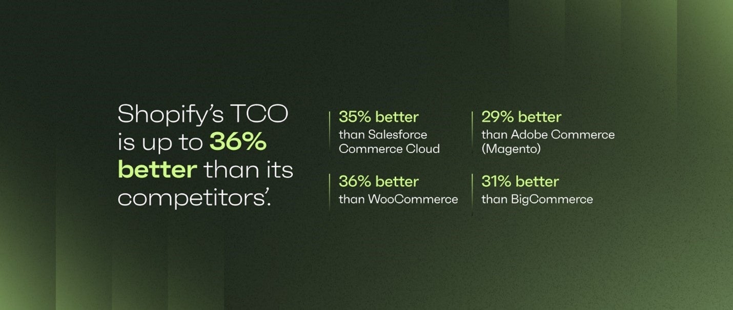原文はこちらをご参照ください:”Shopify has the best total cost of ownership in commerce, with up to 36% better TCO than the competition”