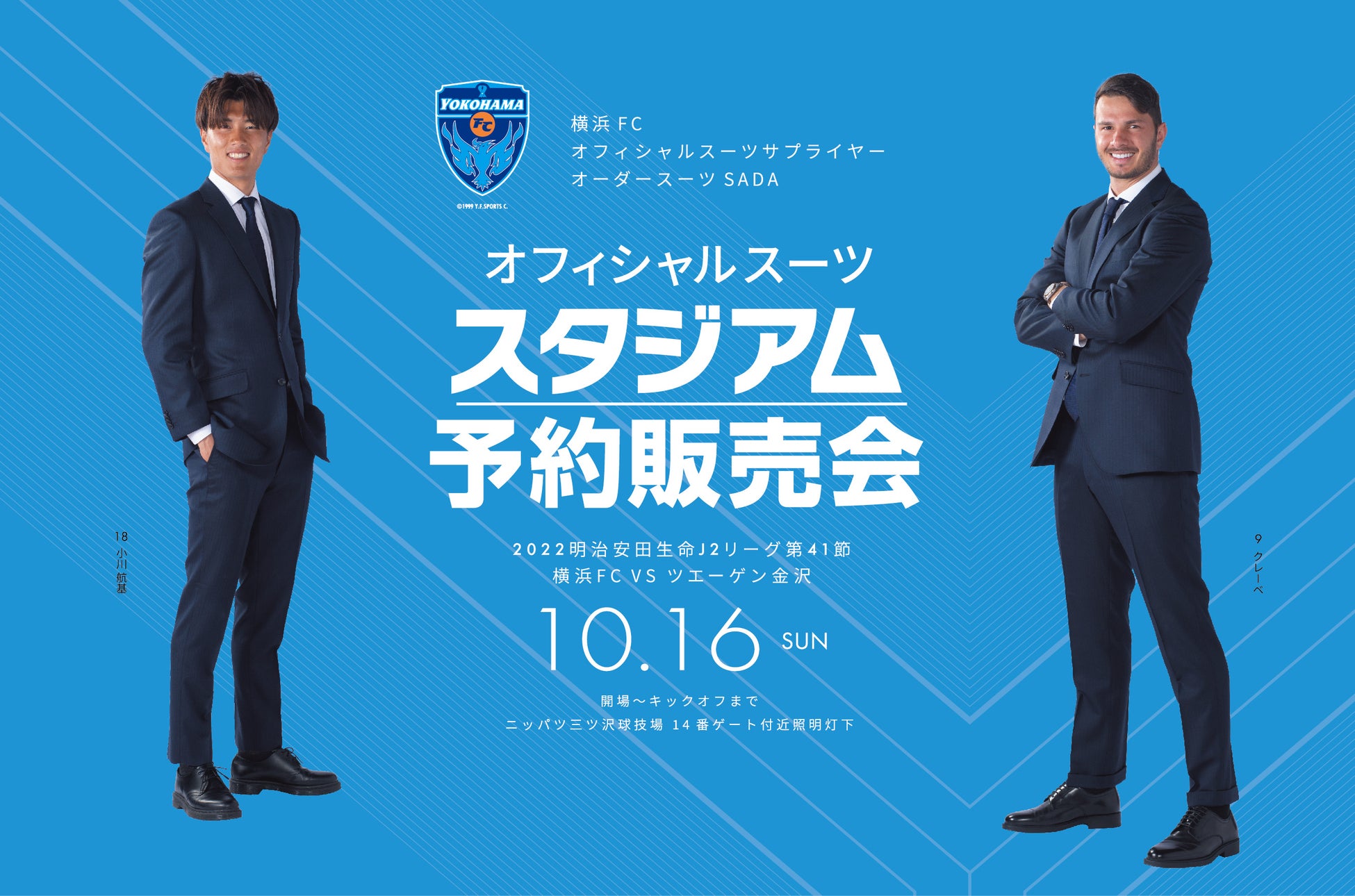 初回19,800円(税込21,780円)~オーダースーツを提供する株式会社オーダースーツSADA(本社:東京都千代田区、代表取締役社長:佐田展隆)は、2022年10月16日(日)に、横浜FC オフィシャルスーツの予約販売会&ガラガラ抽選会を、開場~キックオフまで、ニッパツ三ツ沢球技場 14番ゲート付近照明灯下にて開催いたします。オーダースーツSADAは、オフィシャルスーツサプライヤーとして、横浜FCを応援しています!