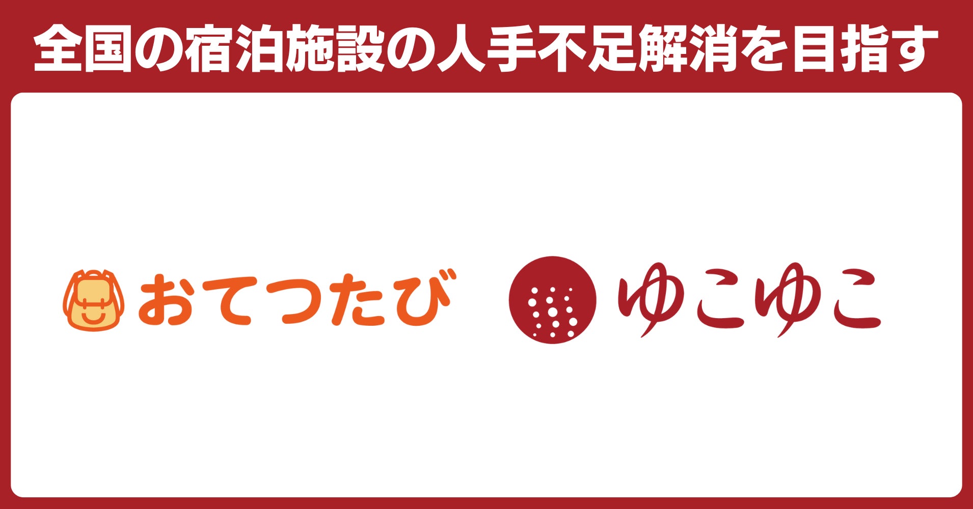 人手不足で困っている地域と地域で働きたい旅人をつなぐ人材マッチングサイト『おてつたび』を運営する株式会社おてつたび(本社:東京都渋谷区、代表取締役:永岡里菜、以下「おてつたび」)は、温泉宿のお電話予約サービス「ゆこゆこ」やシニアマーケティング支援事業を提供する株式会社ゆこゆこ(本社:東京都中央区、代表取締役社長:徳田 和嘉子、以下「当社」)と業務提携いたしました。この提携により、全国の宿泊施設における人手不足の解消と、地方のさらなる関係人口創出を目指します。