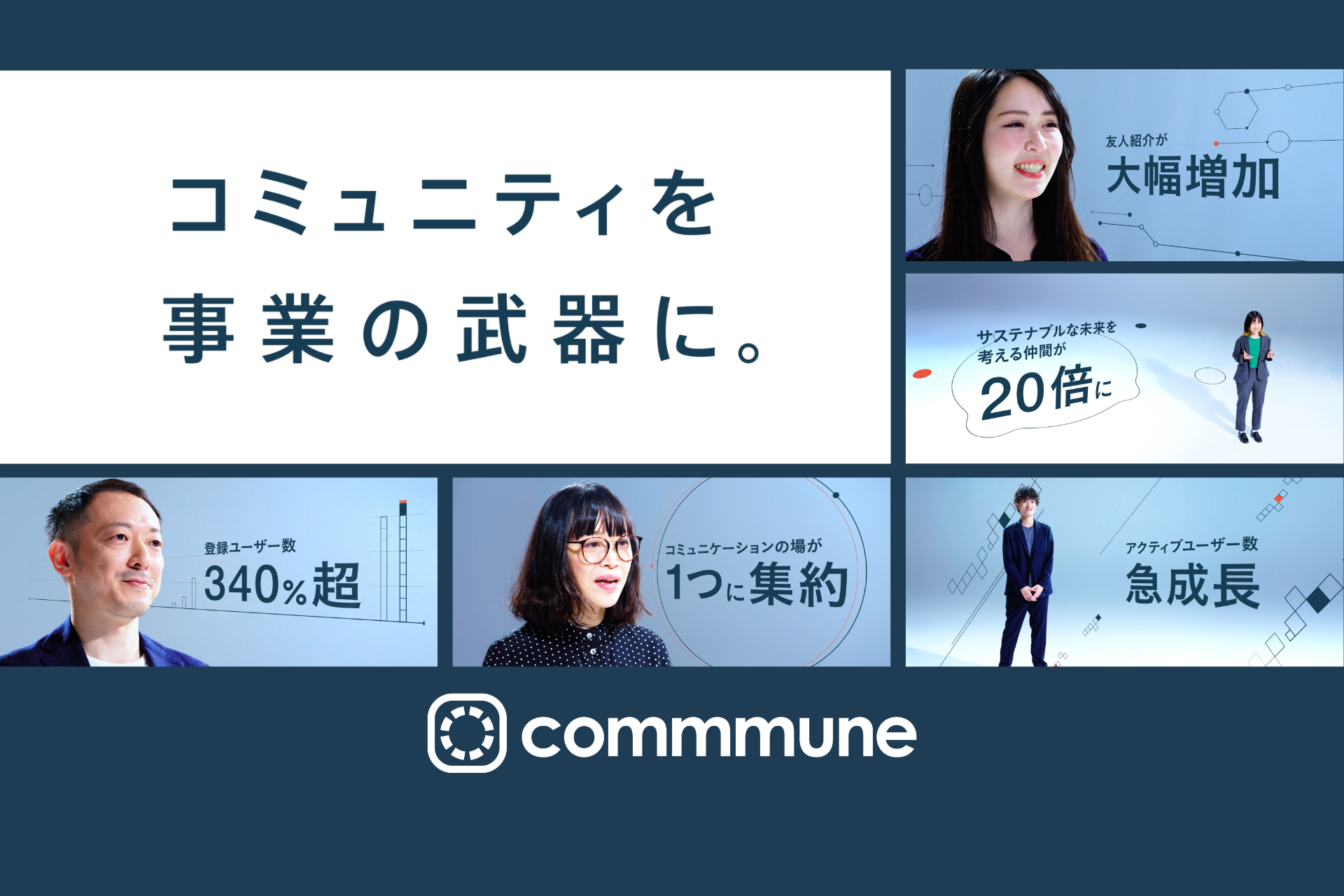 今回のCM動画は、現在commmuneをご活用いただいているお客様にご出演いただき、コミュニティ運営で感じた喜びや、新たな発見、commmuneのご活用方法、実際の成果などをお客様ご自身の言葉で語っていただきました。