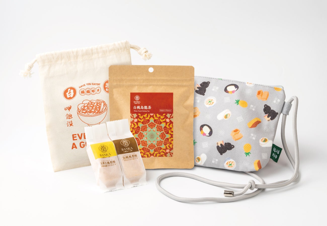 パイナップルケーキ、台湾カステラ、タピオカ、豆花、台湾おにぎり、鹹豆漿、パイナップル、台湾黒熊など、「台湾の好き」を詰め込んだ総柄デザイン。タブには2026年のテーマ「福福好日」の文字を添えた、幸福袋限定アイテムです。
