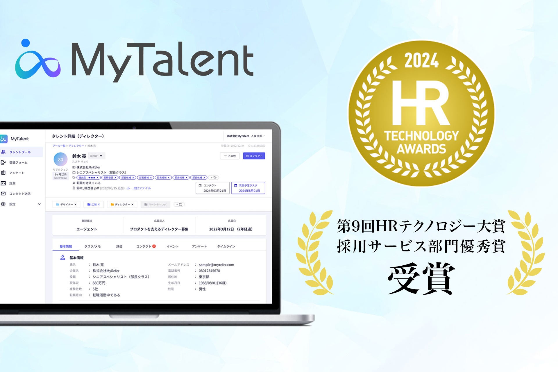 経済産業省後援「第9回HRテクノロジー大賞」にて、採用MAサービス「MyTalent」が採用サービス部門優秀賞を受賞