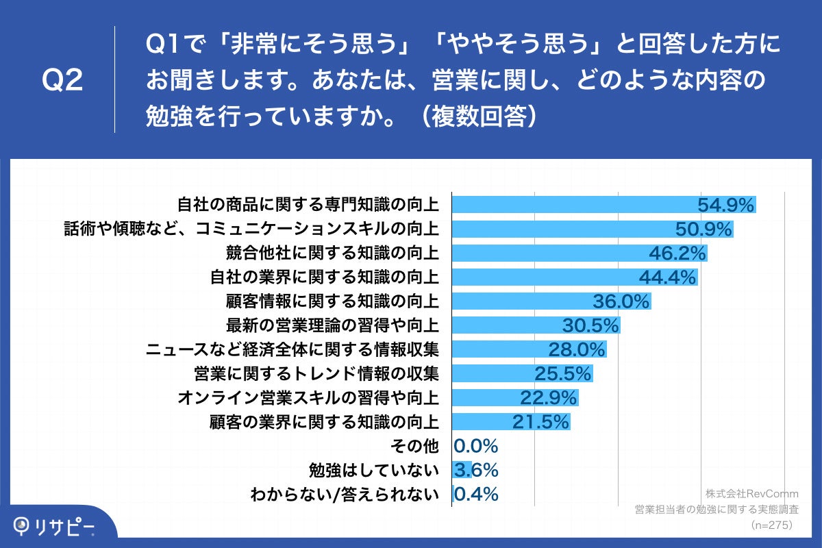 - 最多となった勉強内容は「自社の商品に関する専門知識の向上」で54.9%