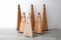 KOLMIOは、唐松材を使用した木製セーフティーコーンです。製造は、長野県東筑摩郡朝日村に拠点を置く家具・木工メーカー「レッドハウスファニチャー」。地域材の活用と環境デザインの両立を掲げ、公共・民間向けの木質プロダクトを開発・製造する地元企業です。