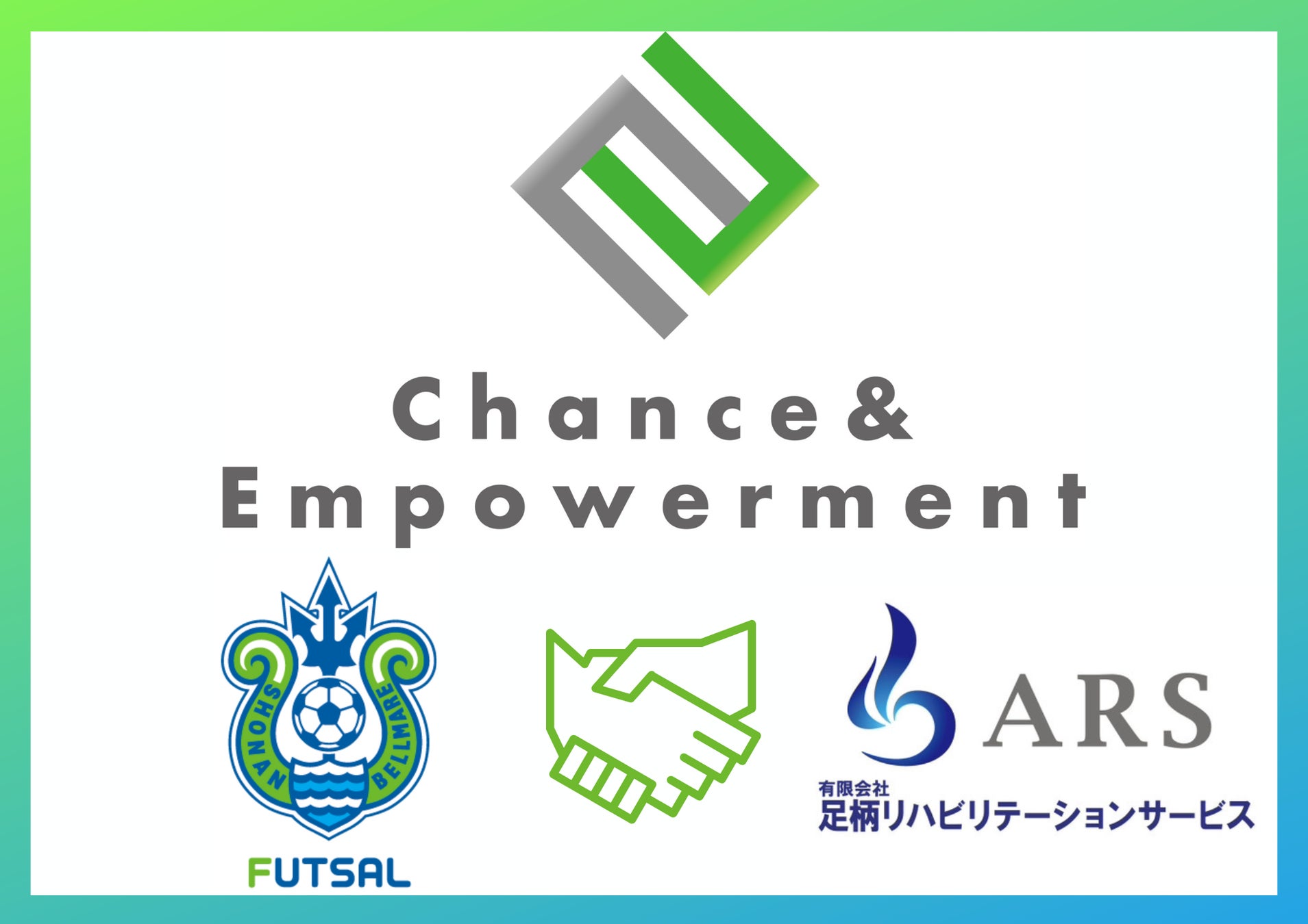 この度、有限会社足柄リハビリテーションサービスと株式会社湘南ベルマーレフットサルクラブ二者間による【Chance&Empowerment パートナー】≪スポーツ振興・普及・発展、及び SDGs(Sustainable Development Goals / 持続可能な開発目標)の達成等に向けた豊かな地域づくりへ寄与すること≫を締結しましたのでお知らせいたします。