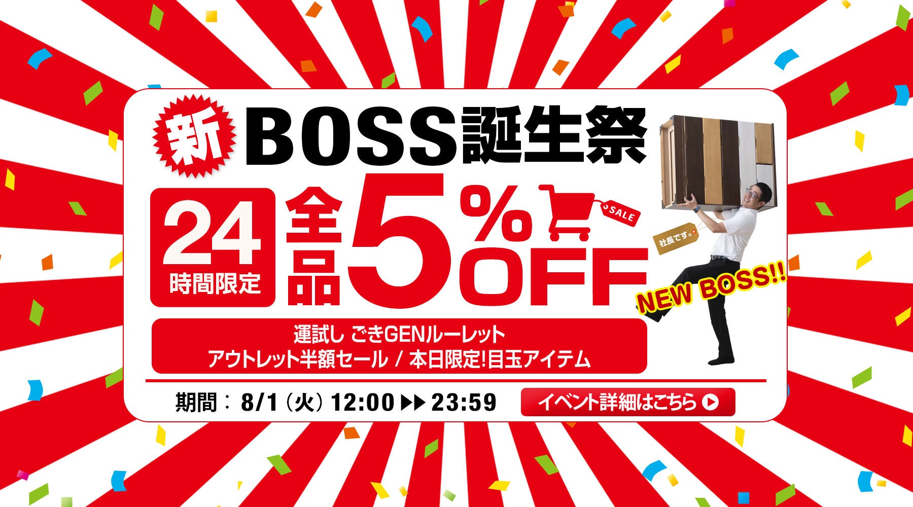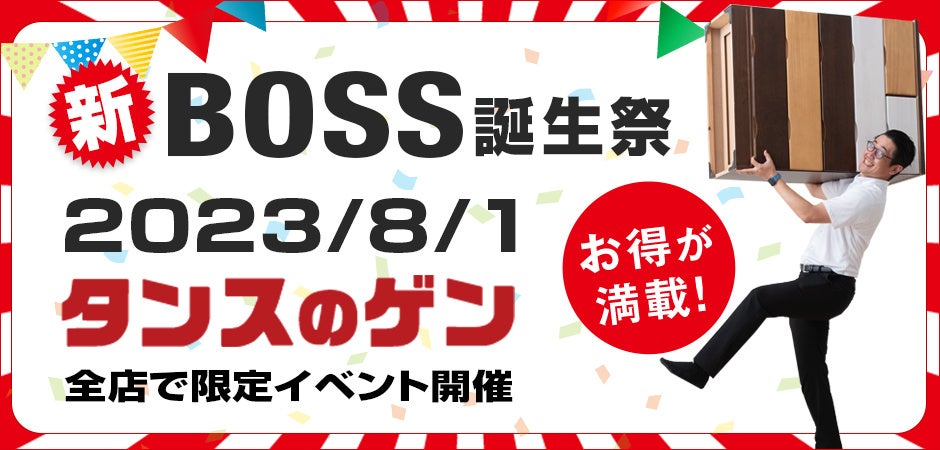 BOSS誕生祭においては、タンスのゲンが運営している国内のショップ全店舗で日ごろからのお客様のご愛顧に感謝して、タンスのゲン代表からの逆バースデープレゼントと称して様々なイベントを予定しております。
