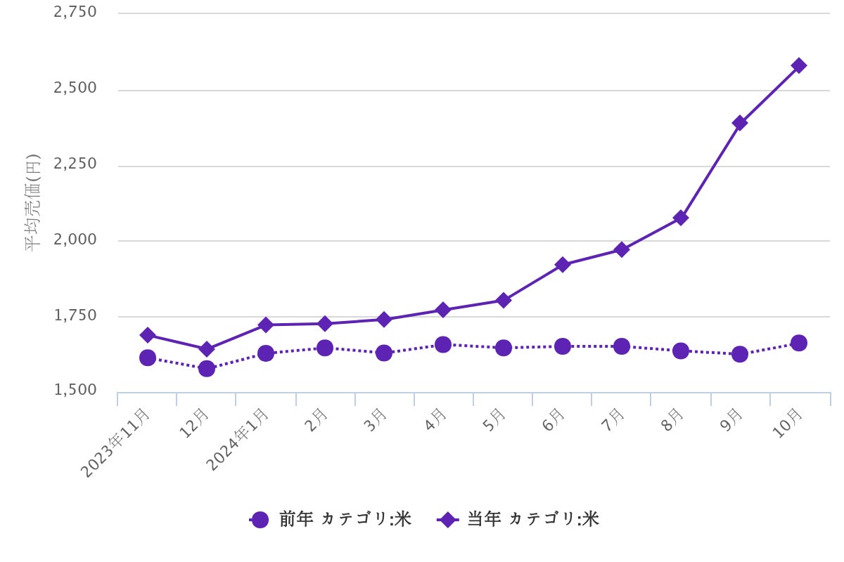 「米」カテゴリ全体の平均売価(様々な銘柄・容量の商品を含む)