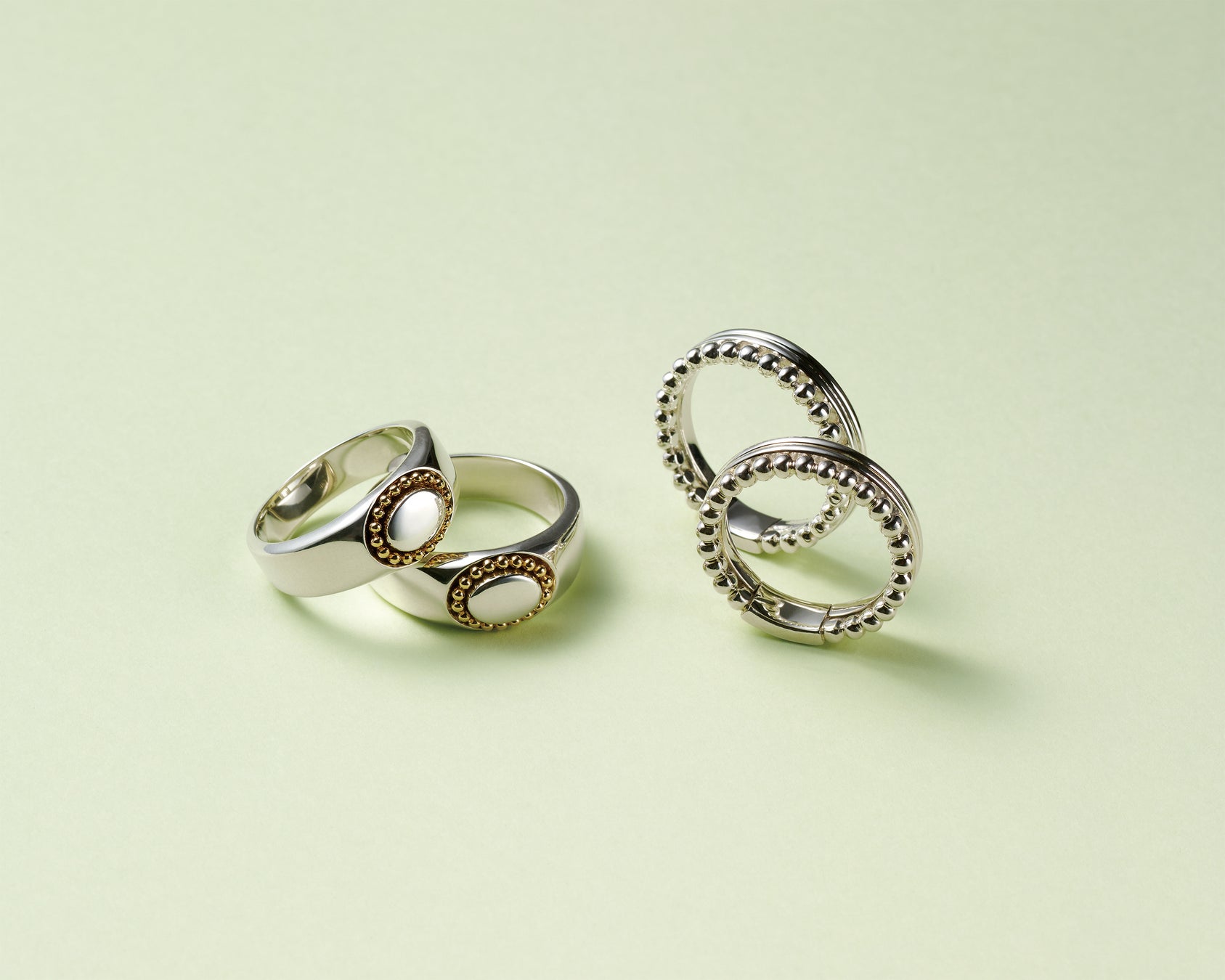トレンドのボールチェーンをイメージして作られたリングは、艶やかですっきりとした表情が魅力。