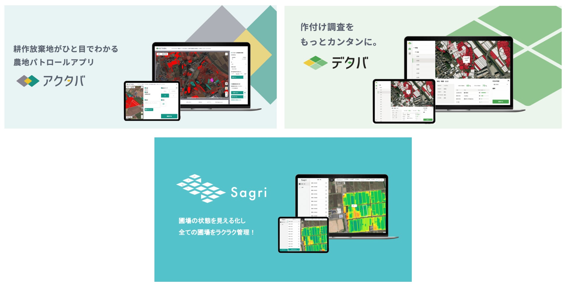 サグリ株式会社では、そのような現状を踏まえ広大な農地を地球から観測でき過去にまで遡ることもできる衛星データとAIを活用した「アクタバ」というサービスを展開、作付け調査を効率化できる「デタバ」や農家様の土壌分析を行える「sagri」などを開発し農業のDX化への貢献を目指しております。