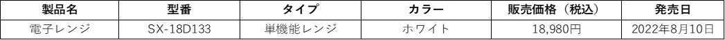 電子レンジ SX-18D132プレスリリース(2021年9月配信)