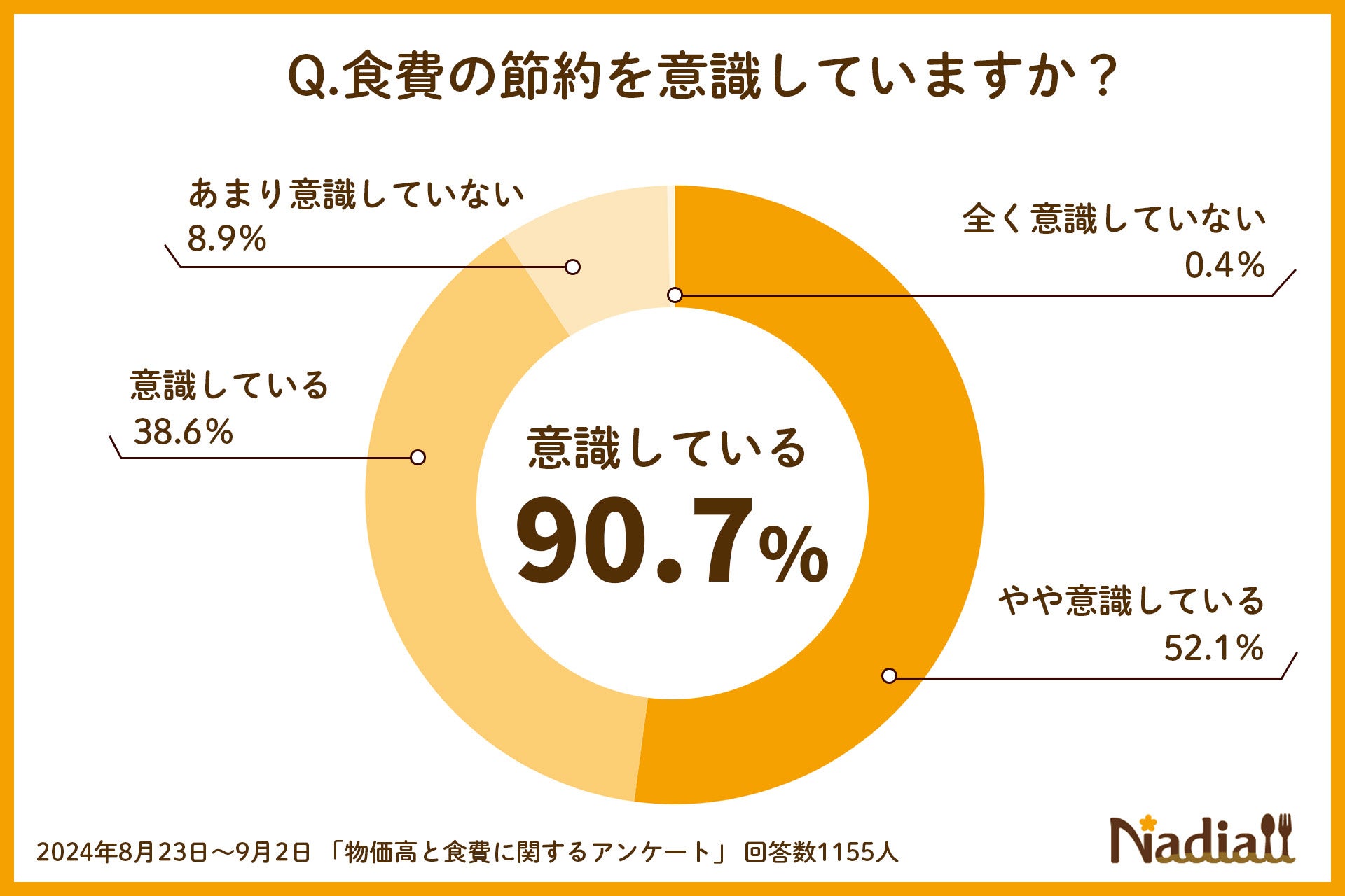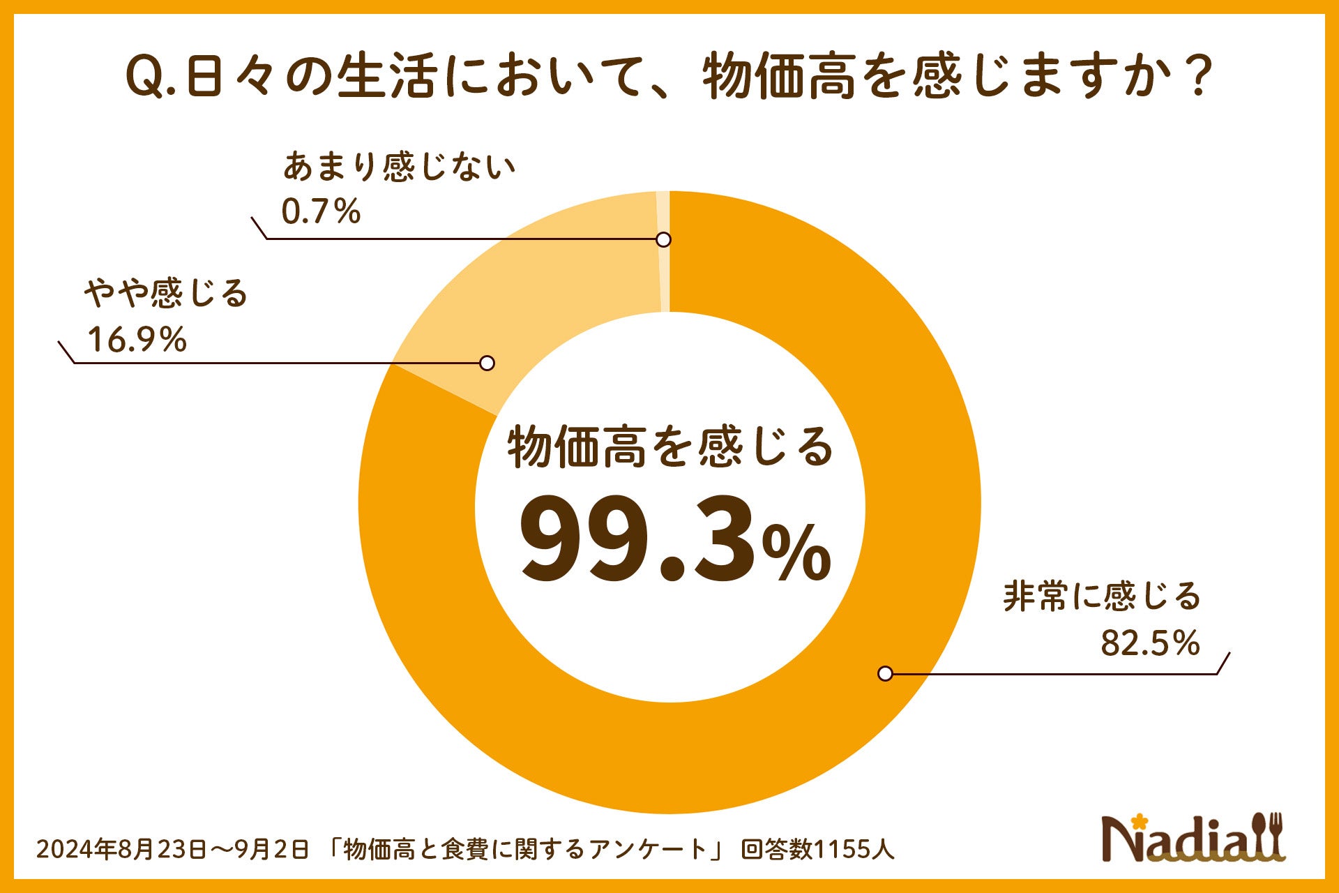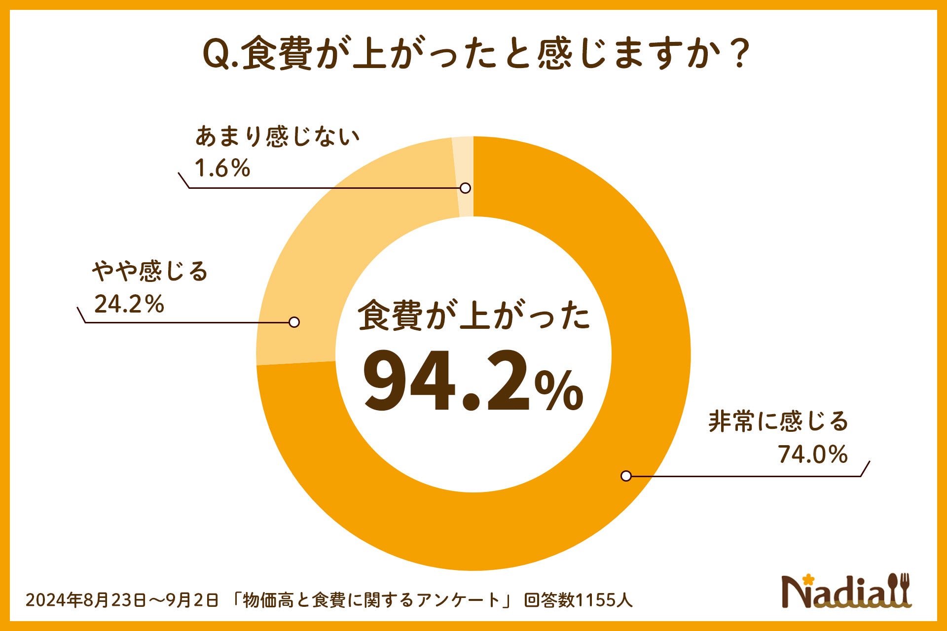 Nadia株式会社(東京都港区/代表取締役社長 葛城嘉紀)にて運営している料理メディア・Nadia(ナディア)(以下「Nadia」)で、Nadiaのユーザーを対象に、「物価高と食費」に関するアンケート調査を実施し、1155名の方にご回答いただきました。