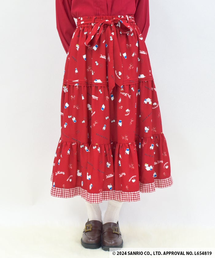 ハローキティプリントスカート・ハローキティカーディガンと合わせたトータルコーディネートがお