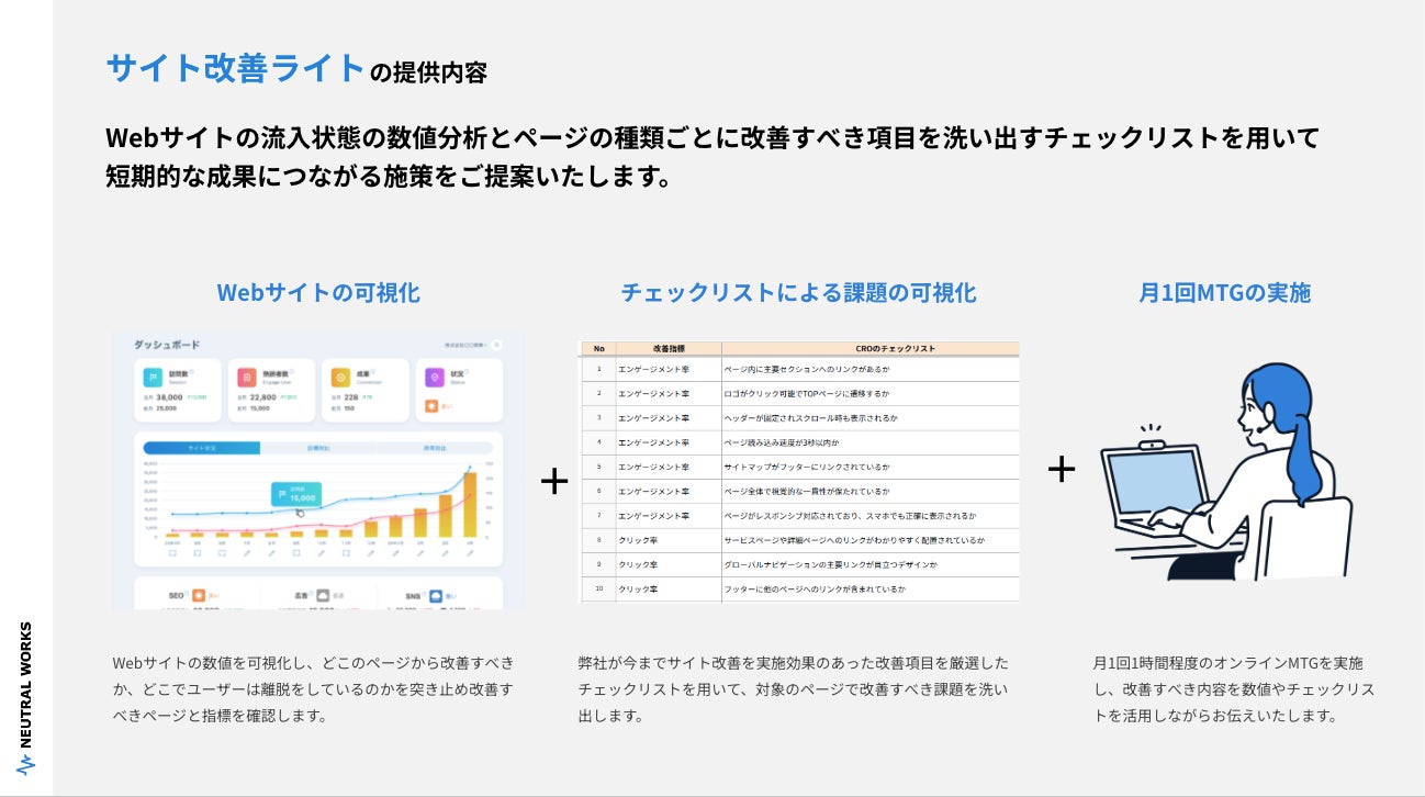 ニュートラルワークスが【月額80,000円】の新サービス「サイト改善ライト」を提供開始