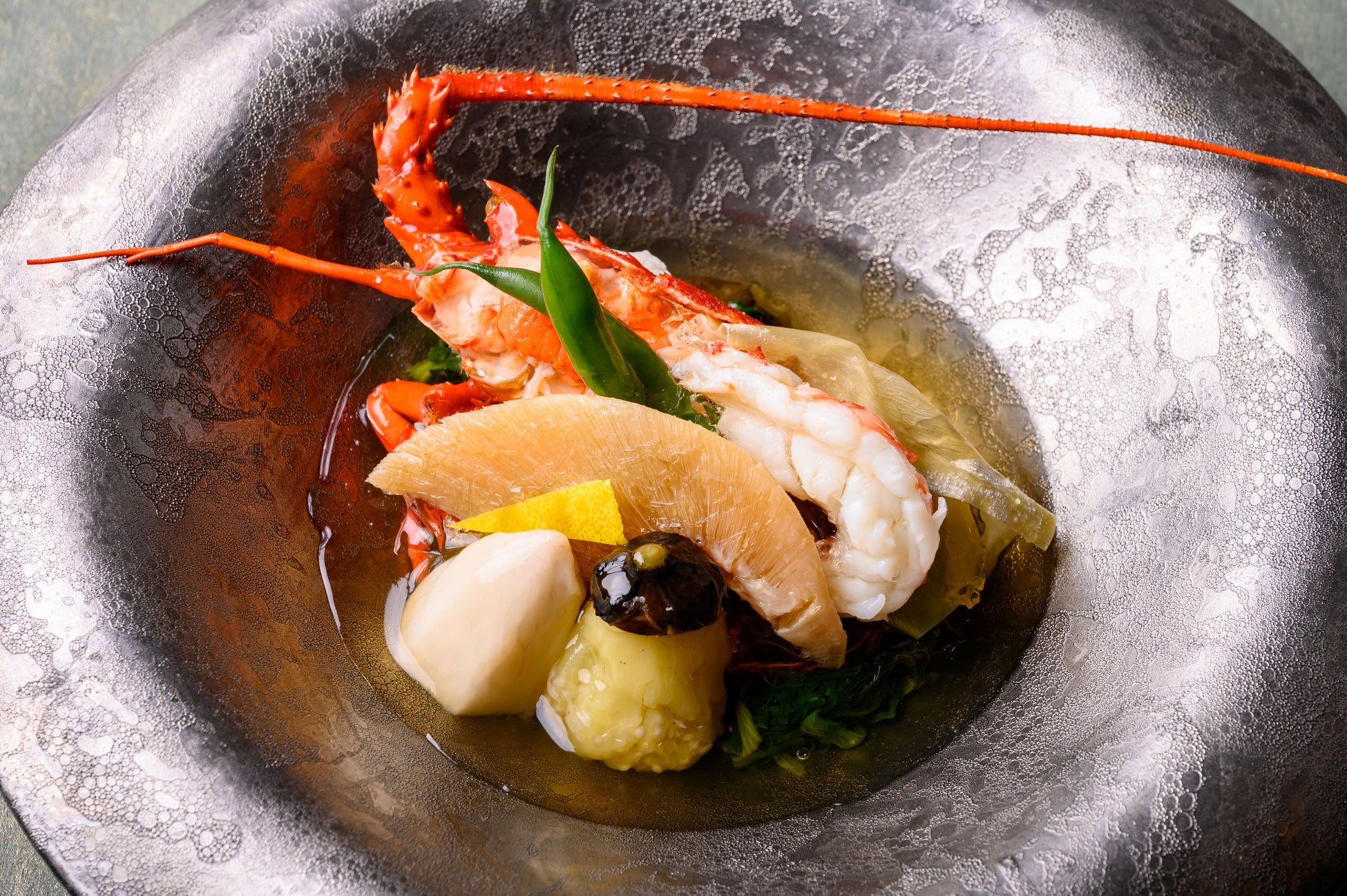 三重県の三大味覚「伊勢海老・鮑・松阪牛」をはじめ、厳選した季節の食材を、お客様のご希望をお伺いしながら目の前で調理をして提供いたします。自ら食材の宝庫「伊勢志摩」の各所に出向き、食の魅力を知り尽くした料理人との会話を、楽しみながら特別な時間をお過ごしいただけます。