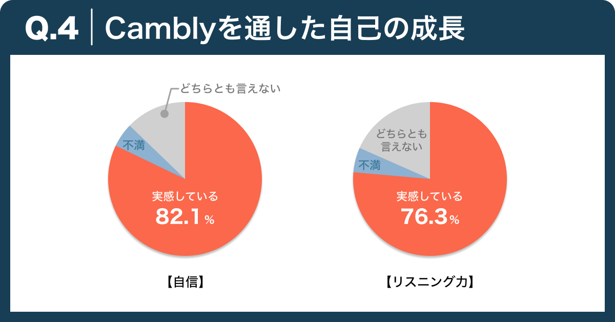 ・8割以上が「Camblyを始めてから英語力に自信がついた」と回答