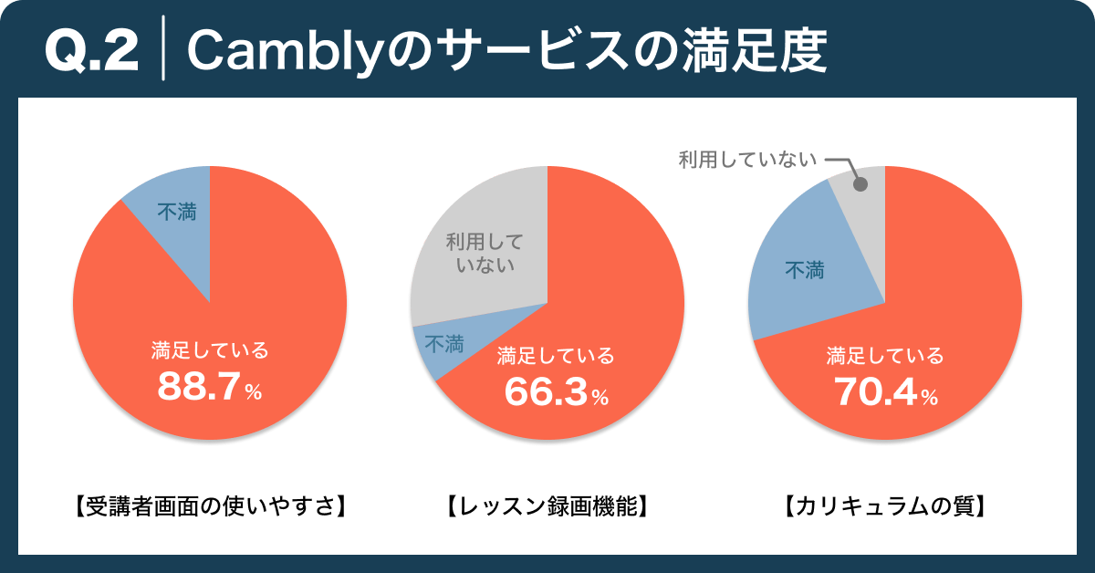 ・Camblyのカリキュラムについて、7割以上が「満足している」と回答