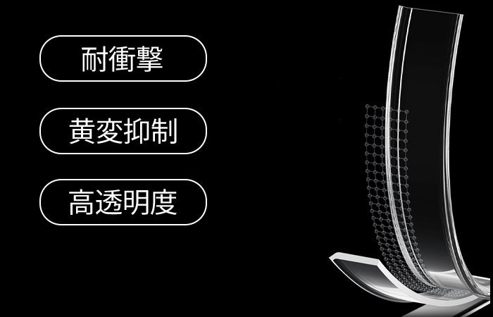 「耐衝撃」「黄変抑制」「高透明度維持」